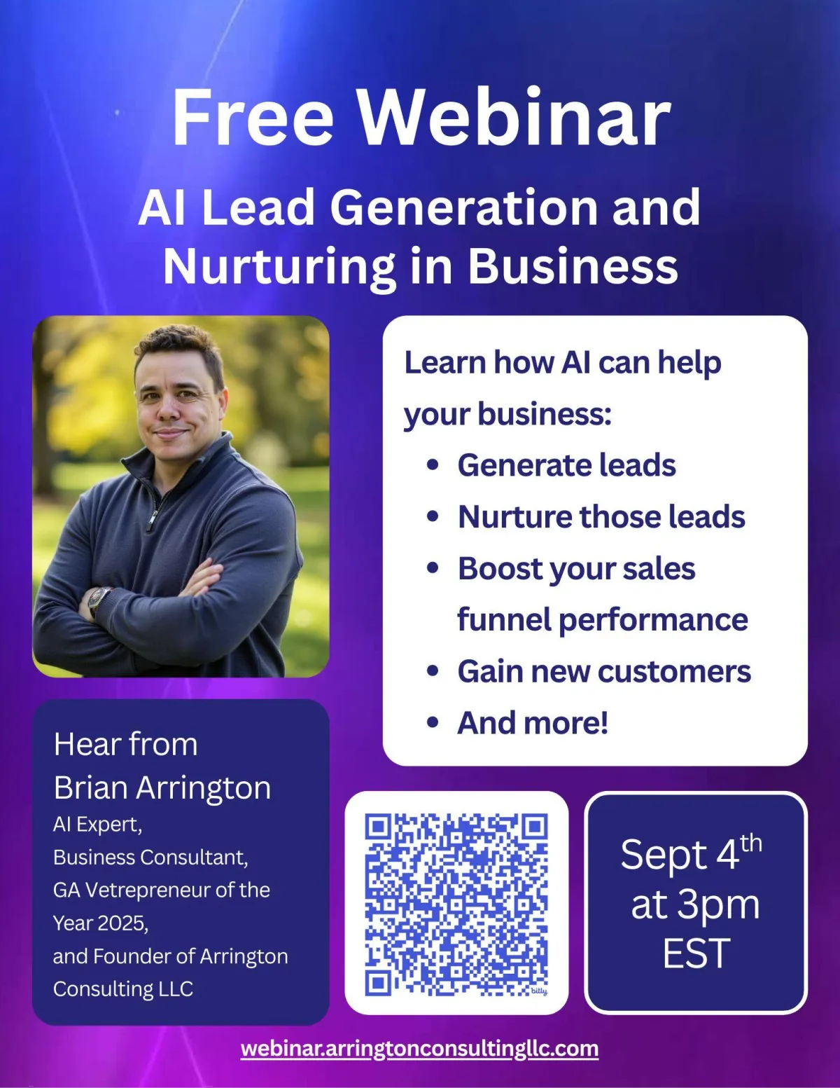 Arrington Consulting LLC empowers small and medium-sized businesses through cutting-edge AI solutions, personalized automation, and strategic coaching designed to elevate customer engagement, drive efficiency, and boost revenue growth. Founded by visionary leader Brian Arrington, our commitment to trust, loyalty, and relationship-building ensures each client receives tailored strategies uniquely aligned with their goals. We transform your passion into lasting business success.
